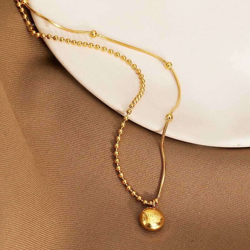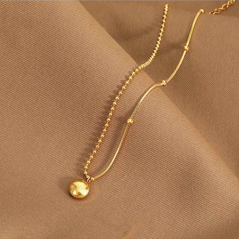 送料無料 MEYRROYUステンレススチールゴールドカラーボールビーズネックレスブレスレット女性2021トレンドロマンチックパーティーギフトジュエリーセット レース アクセサリー AE001154378842173