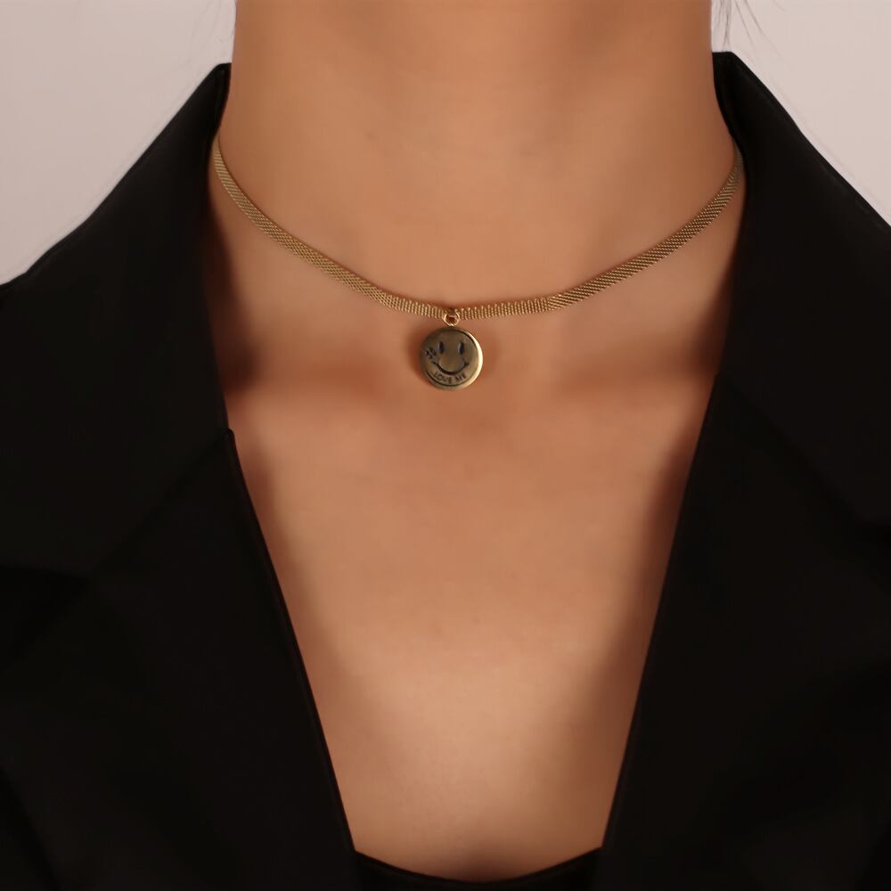送料無料 MEYRROYUステンレススチール2色笑顔ペンダントネックレスレディースチョーカー2021トレンドパーティージュエリーコリアーファム レース フェミニン アクセサリー AE001115629724760
