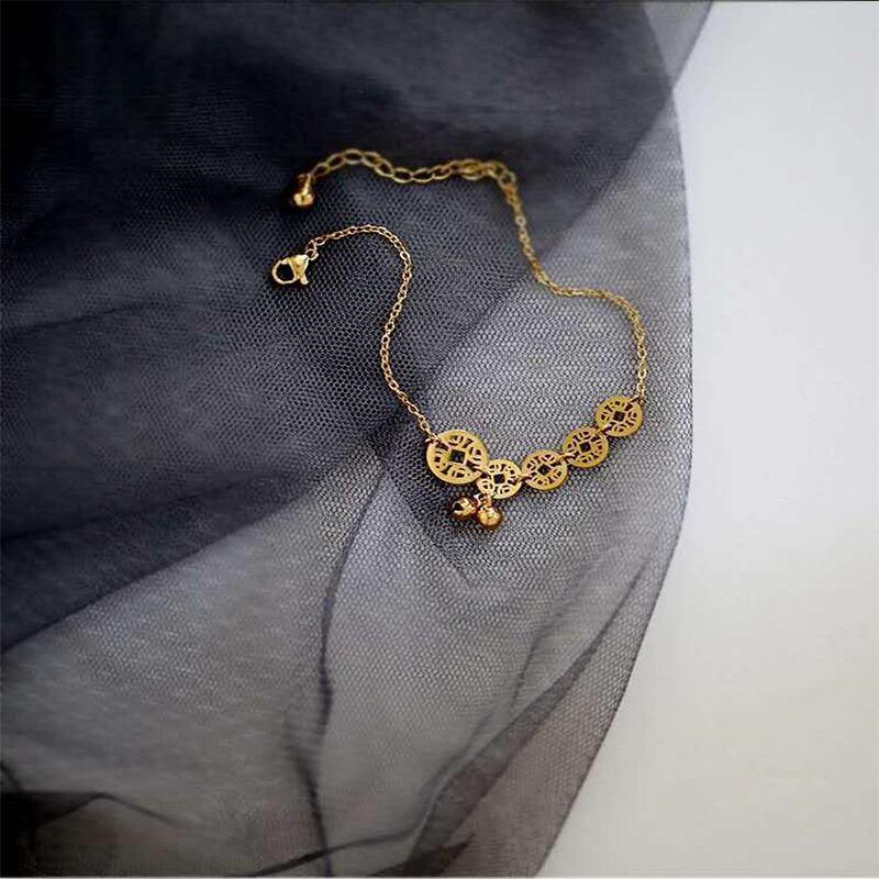 送料無料 MEYRROYUステンレススチールゴールドカラーコインアンクレットジョーカーシンプルアンクレット2021ガールズジュエリーペリセリデス アクセサリー AE001152990606299