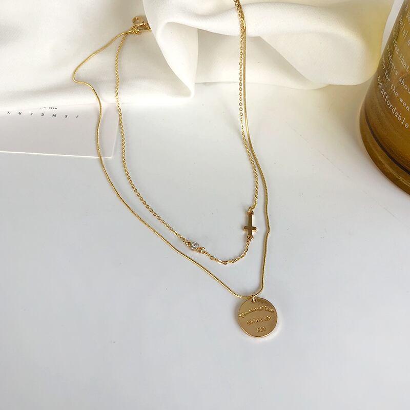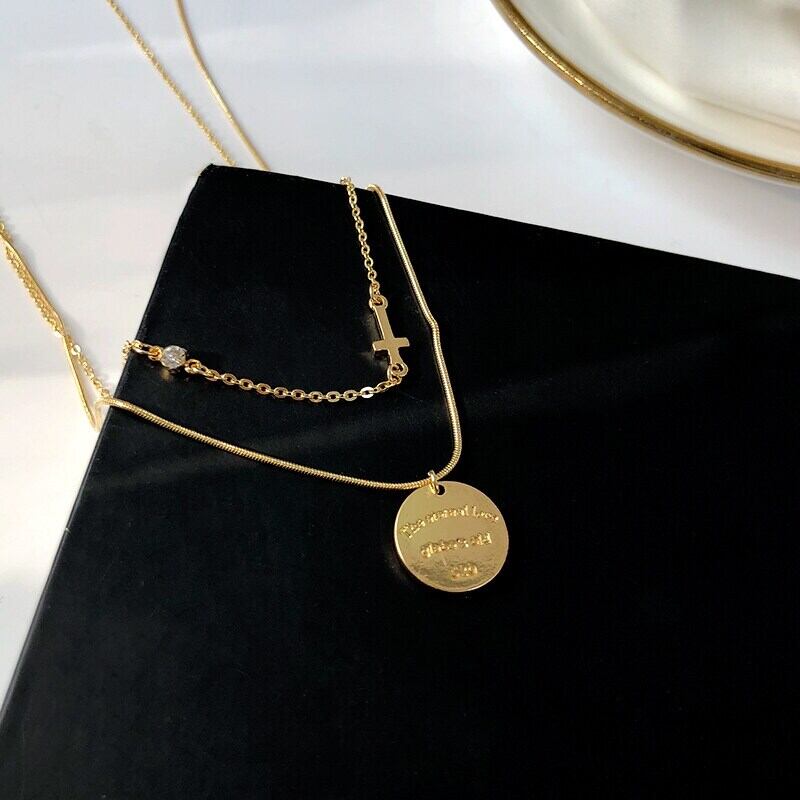 送料無料 MEYRROYUステンレススチールゴールドカラーコインネックレスレディースジルコンチェーンチョーカー2021トレンドペンダントジュエリーコリアー レース アクセサリー AE001122404515017