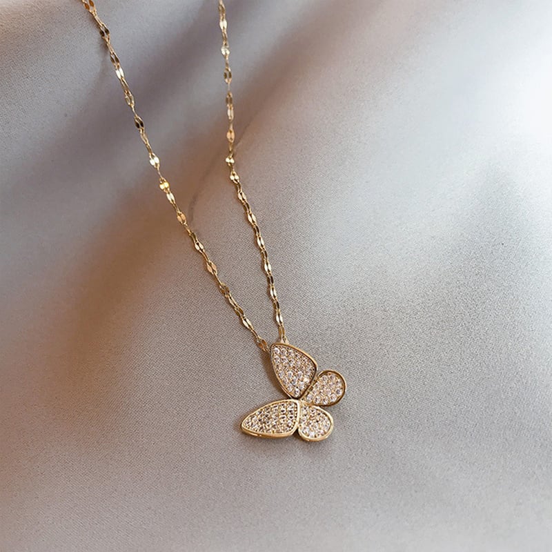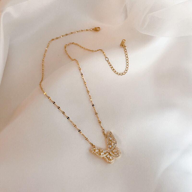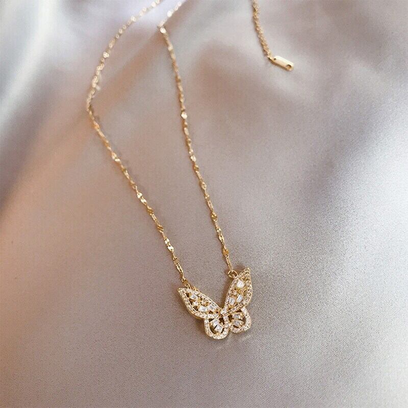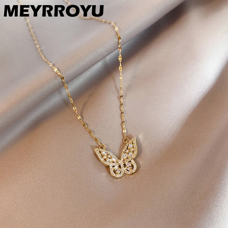 送料無料 MEYRROYUステンレススチールロマンティックジルコンバタフライペンダントネックレス2021トレンドチェーンウーマンギフトパーティージュエリー レース アクセサリー AE001150958973222