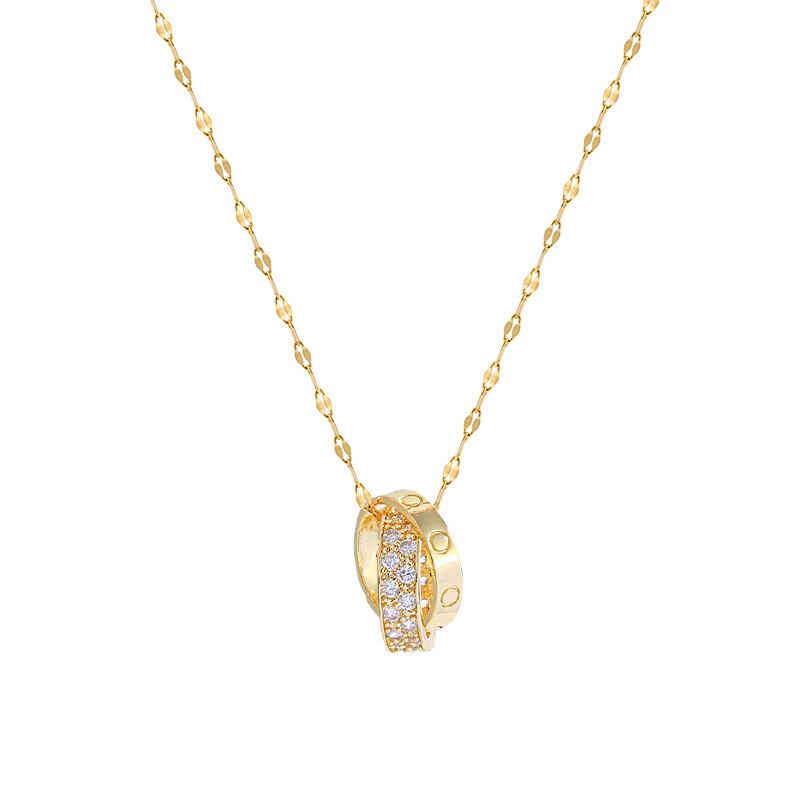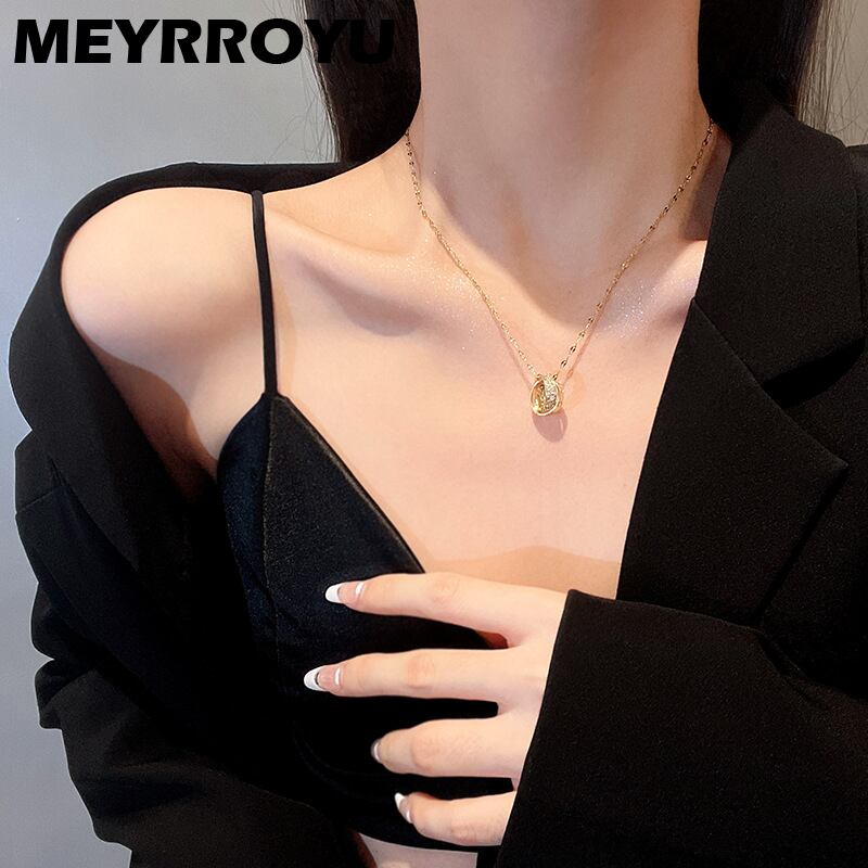 送料無料 Lステンレススチールダブルサークルジルコンネックレス女性2021スタイル鎖骨チェーンジュエリーギフト レース アクセサリー AE001182012214083