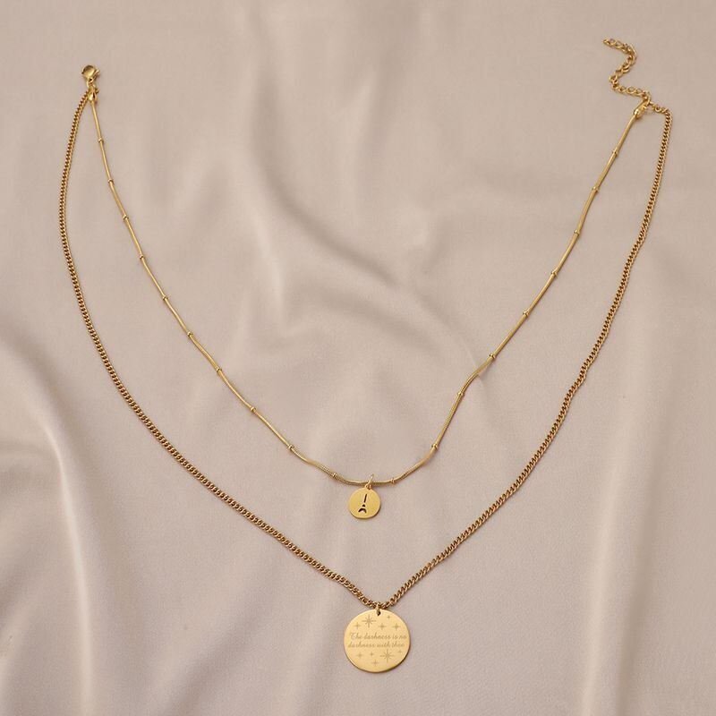 送料無料 MEYRROYUライトラグジュアリーレターディスクペンダントネックレスレディースステンレススチールジュエリーマルチレイヤーネックレスセクシーな鎖骨チェーン レース アクセサリー AE001124108570303