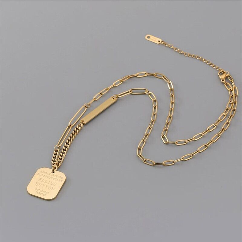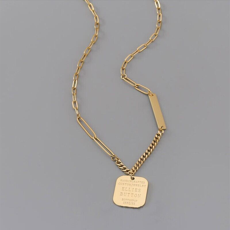送料無料 MEYRROYUステンレススチールゴールドカラースクエアペンダントネックレスシンプルチェーンチョーカー2021トレンディギフトコリアー レース スクウェア アクセサリー AE00118297668885