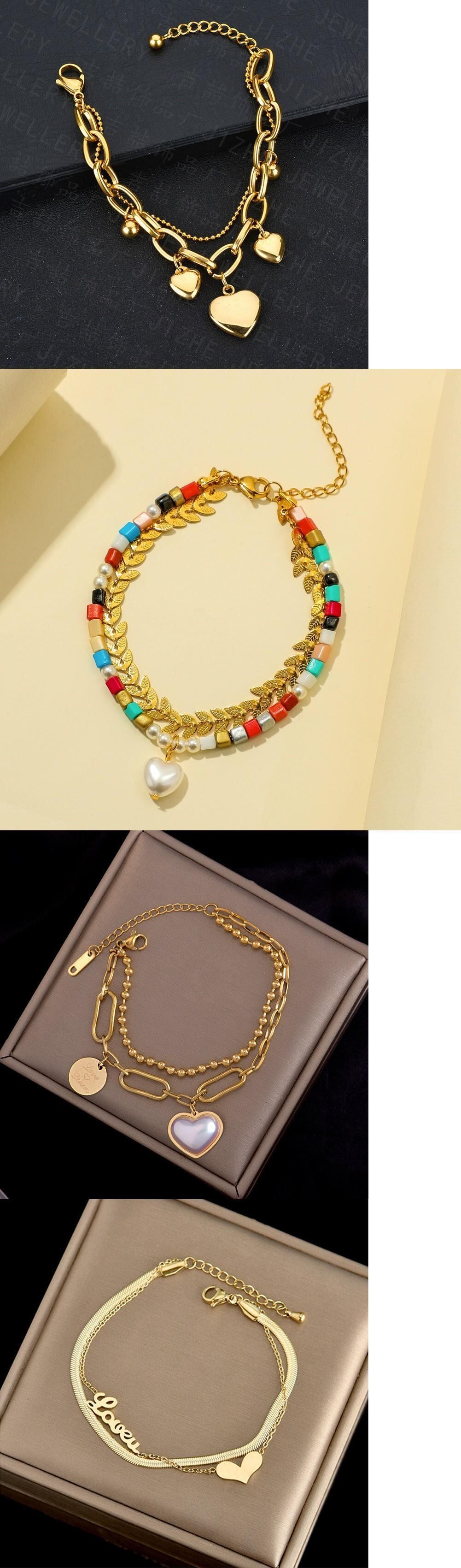 送料無料 MEYRROYUステンレススチール2色マルチスタイルハートブレスレットダブルレイヤーブレスレット女性2021ギフトジュエリー アクセサリー AE00118051961789