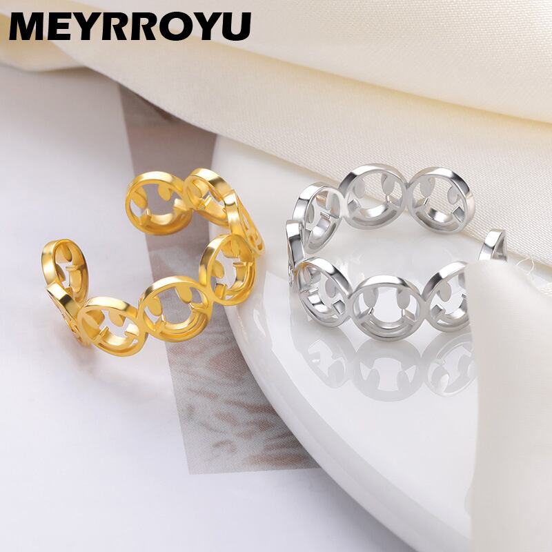 送料無料 MEYRROYUステンレス鋼ロマンチックかわいい2色スマイリーリング2021トレンド女性カップルギフトパーティージュエリー 大人ガーリー スウィート キュート カジュアル 指輪 アクセサリー AE001188028086809