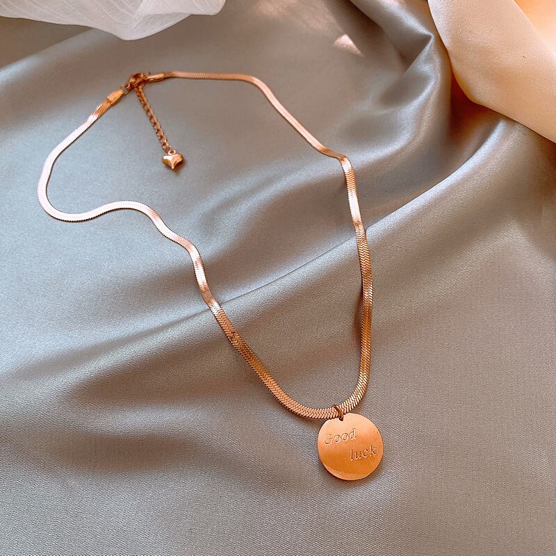 送料無料 MEYRROYUステンレススチールゴールドカラーレターコインペンダントネックレス女性2021トレンディなパーティーギフトジュエリーカラーパラ レース アクセサリー AE00115852760599