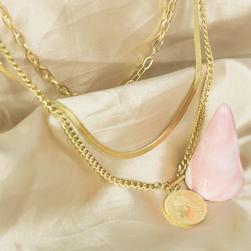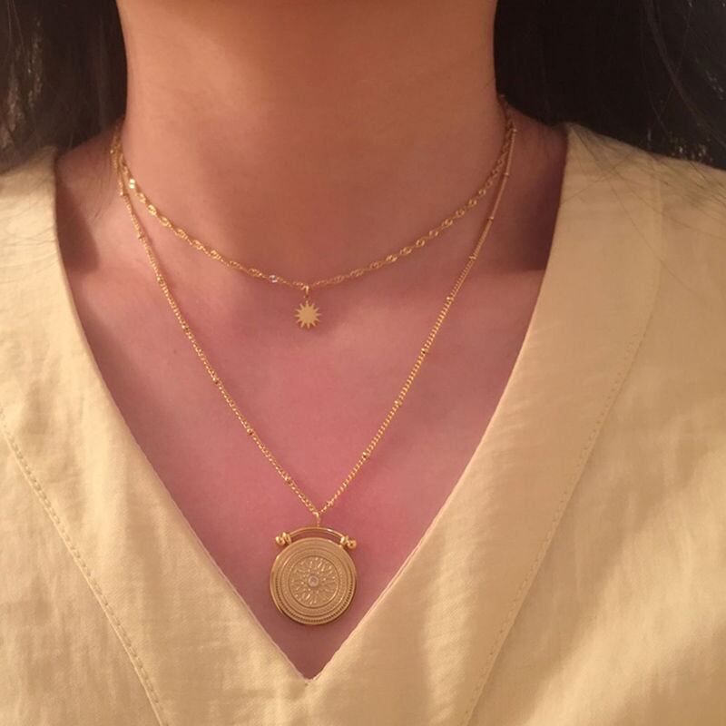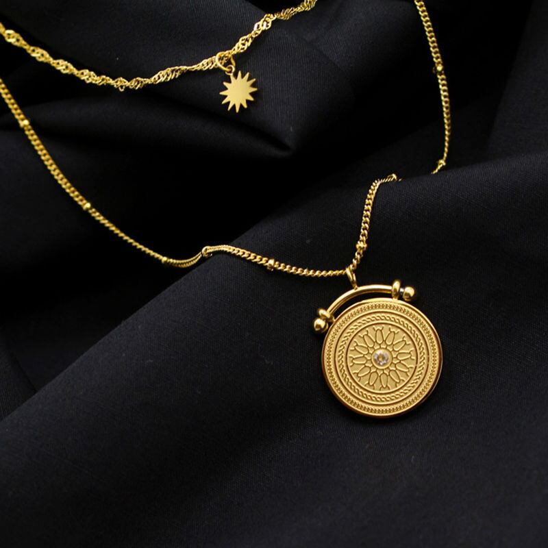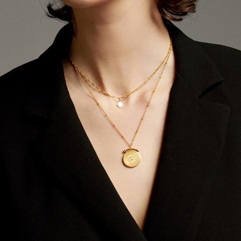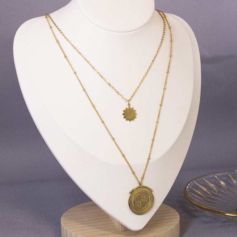 送料無料 MEYRROYUステンレス鋼パンクヒップホップ2層ひまわりタグネックレス女性ギフトトレンドチェーンジュエリー レース フラワーデザイン アクセサリー AE001119159517633