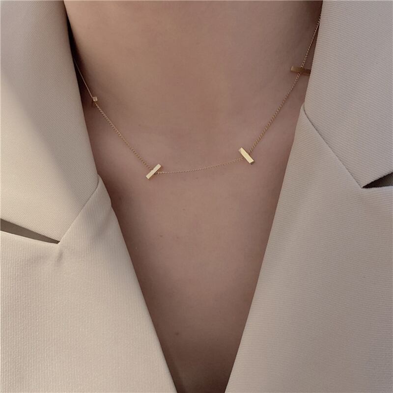 送料無料 MEYRROYUステンレススチールゴールドカラー長方形キューブネックレス女性チェーン2021トレンドロマンチックパーティーギフトジュエリー レース アクセサリー AE001193517481991