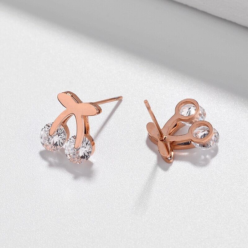 送料無料 MEYRROYUステンレススチールゴールドカラーラインストーンチェリースタッドピアス2021トレンドパーティーギフトジュエリーブリンコス イヤリング リング 指輪 アクセサリー AE001150131610539
