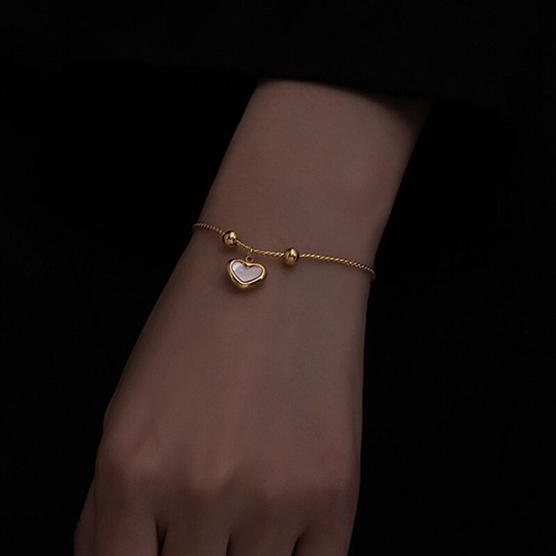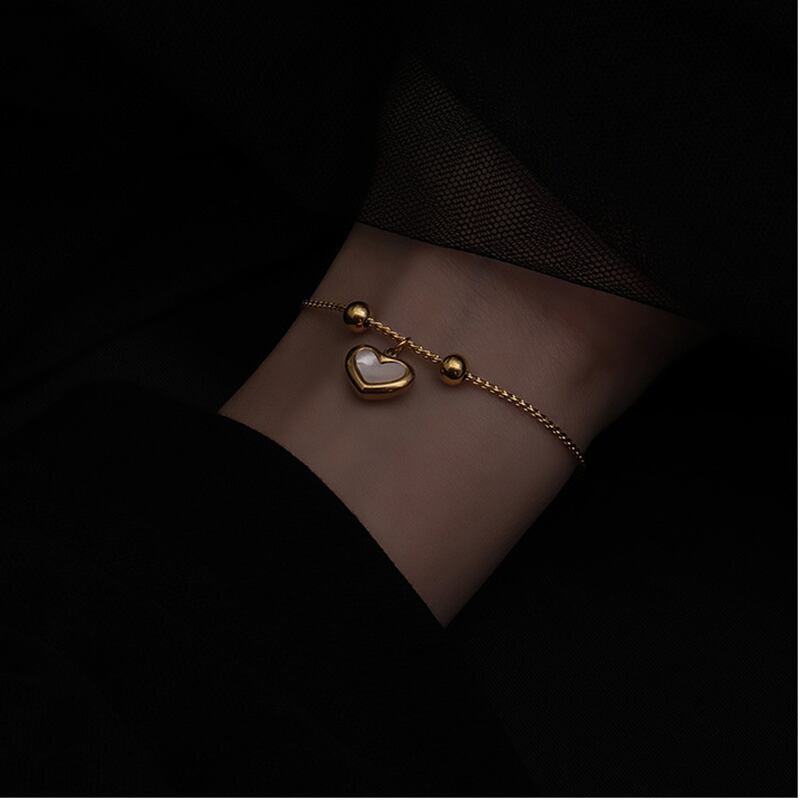 送料無料 MEYRROYUステンレススチールゴールドカラーシェルハートペンダントブレスレット女性2021トレンドロマンティックパーティーギフトジュエリー アクセサリー AE001126195194829