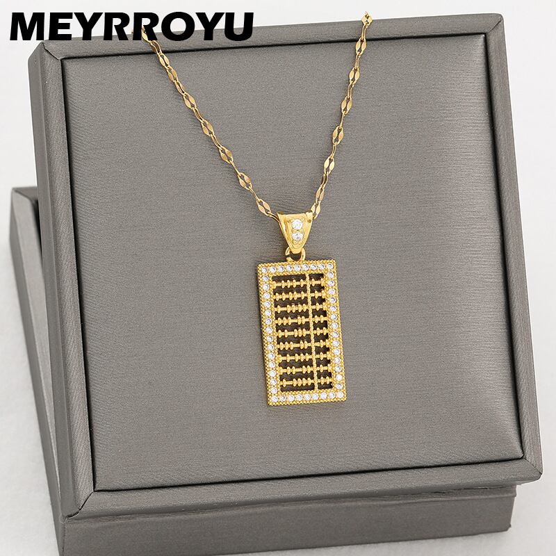 送料無料 MEYRROYUステンレススチールエスニックそろばん、ジルコンペンダントネックレスレディースギフトトレンドチェーンジュエリー レース アクセサリー AE001197239293998