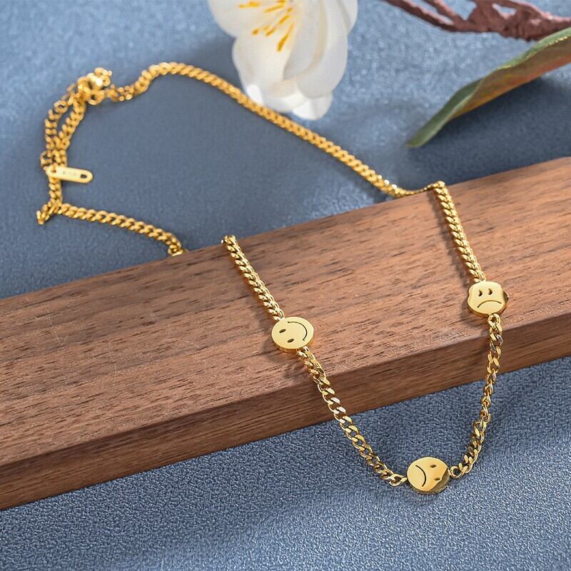 送料無料 MEYRROYUステンレススチール3色泣くスマイルフェイスネックレス鎖骨チェーン2021トレンディなパーティーギフトジュエリー レース アクセサリー AE001167709967472