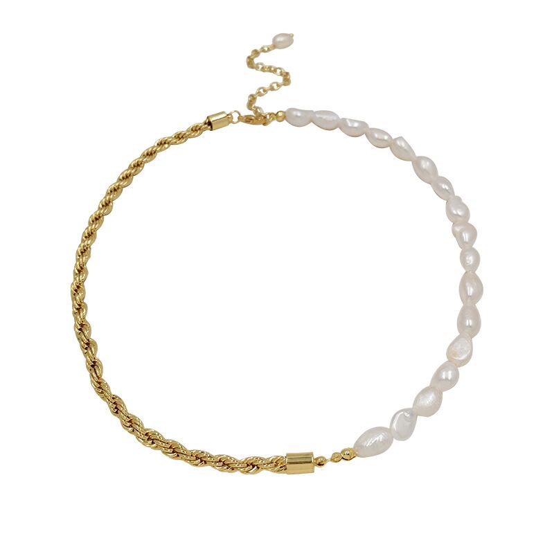 送料無料 MEYRROYUステンレススチールゴールドカラーツインテルパールネックレスウィメンズチョーカー2021トレンドロマンティックパーティーギフトジュエリー レース 真珠 アクセサリー AE001132185579957