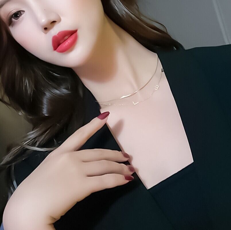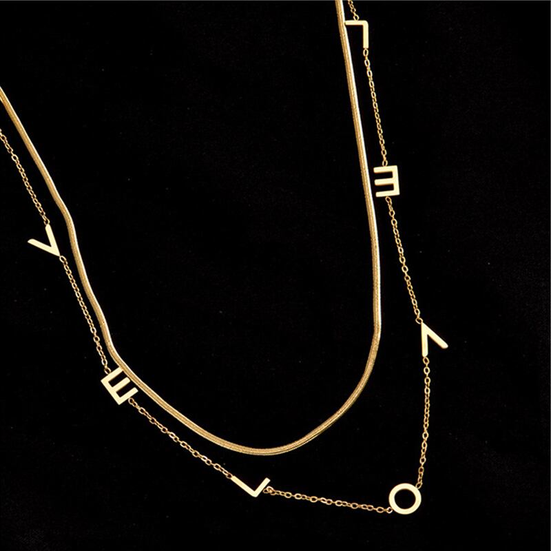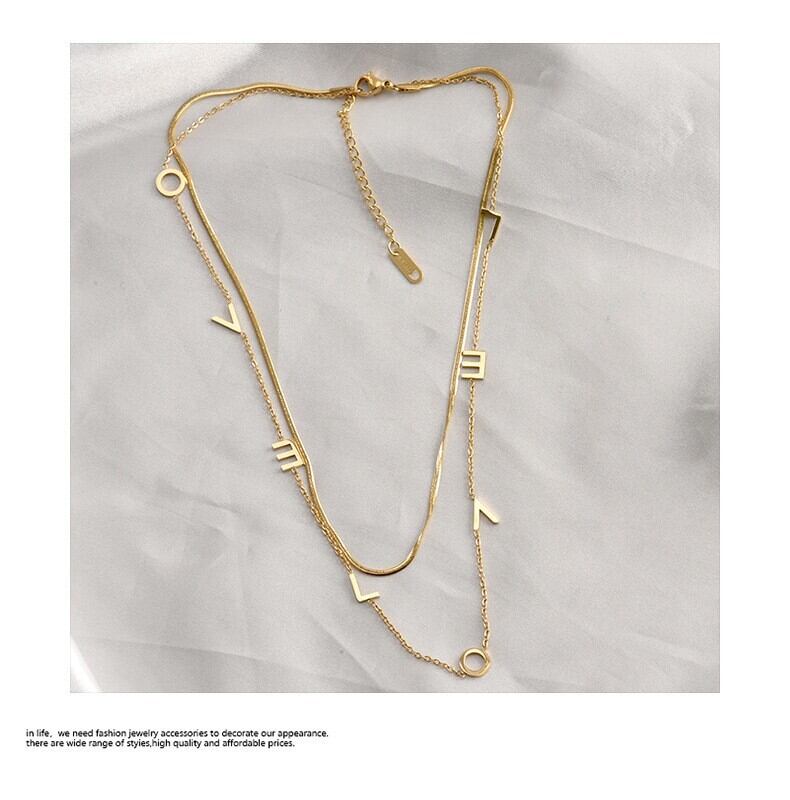 送料無料 MEYRROYUステンレススチールダブルレイヤーゴールドカラーラブネックレスチャームシンプルネックレス2021ギフトジュエリーコリアー レース アクセサリー AE001141063884419