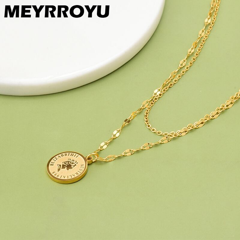 送料無料 MEYRROYUステンレス鋼パンクヒップホップ2層ポートレートペンダントネックレス女性ギフトトレンドチェーンジュエリーパーティー レース アクセサリー AE001133312317331