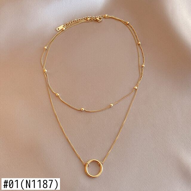 送料無料 MEYRROYUステンレススチールゴールドカラー2レイヤーサークルペンダントネックレスレディースチョーカー2021トレンディなパーティージュエリーpulseira レース アクセサリー AE001175291189788