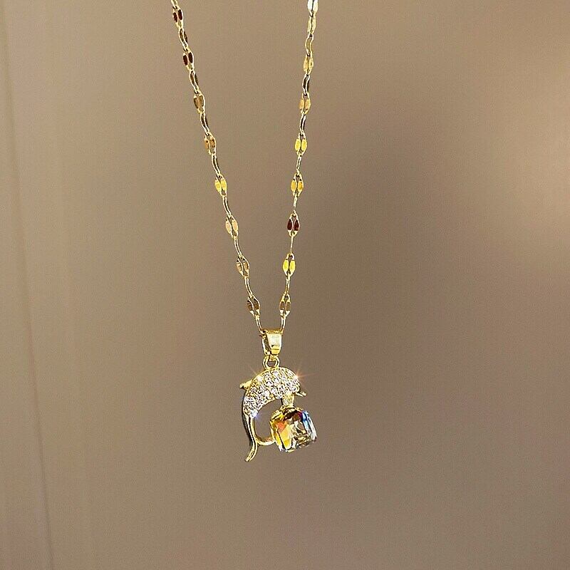 送料無料 MEYRROYUステンレススチールロマンティックトレンドチェーンクリスタルドルフィンペンダントネックレスレディースガールギフトジュエリー レース アクセサリー AE001127002356818