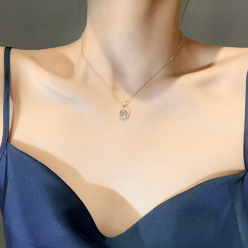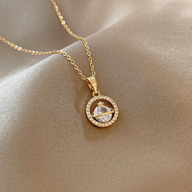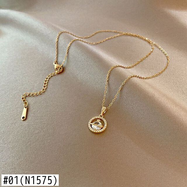 送料無料 幾何学的な丸いペンダントステンレス鋼のネックレス女性シンプルな気質野生の鎖骨チェーンジュエリーギフト レース アクセサリー AE001158914651247