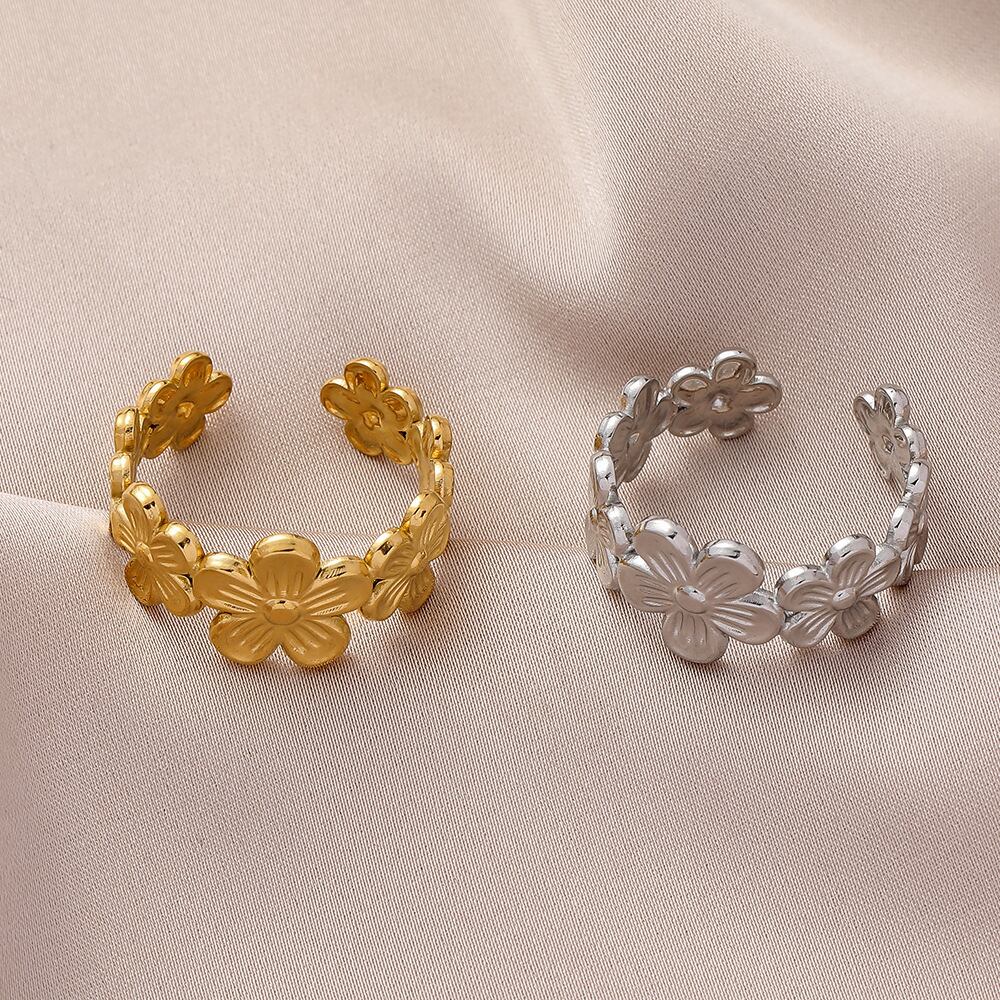 送料無料 MEYRROYUステンレススチール2色フラワーリング2021トレンドアジャスタブルオープニングリング女性ロマンティックパーティーギフトジュエリー 指輪 フラワーデザイン アクセサリー AE001151572820547