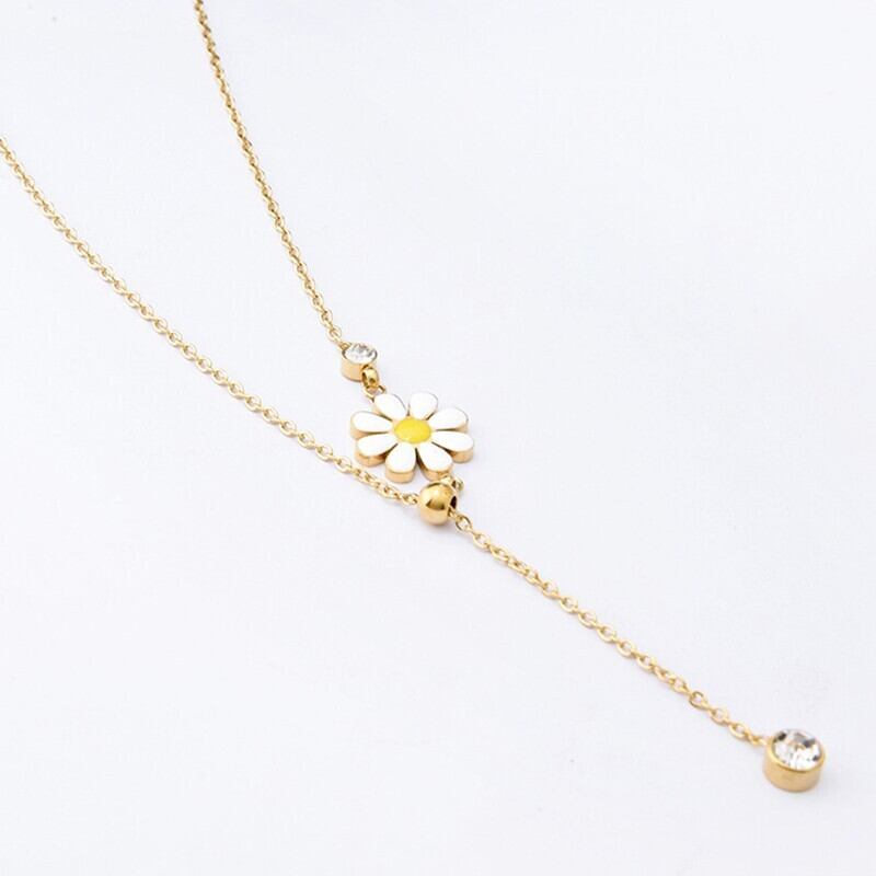 送料無料 MEYRROYUステンレススチールゴールドカラーデイジーラインストーンパンデントネックレスチョーカー2021トレンディなパーティーギフトジュエリー レース アクセサリー AE001190125533672