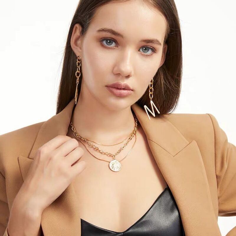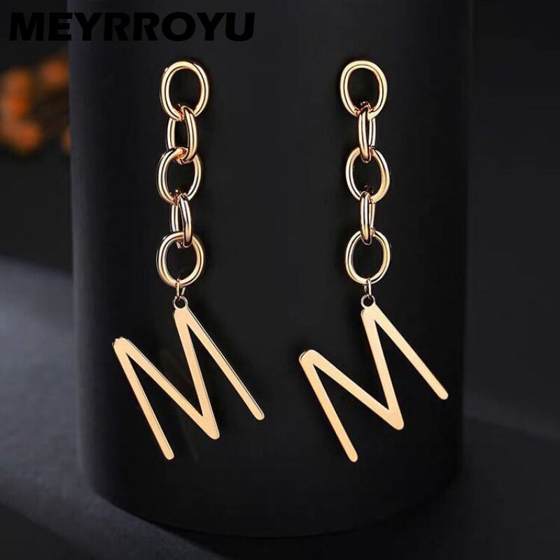 送料無料 Lステンレススチールジュエリー幾何学的な頭文字Mイヤリング2021トレンディなイヤリング女性のパーティーギフト 指輪 アクセサリー AE00119042584667