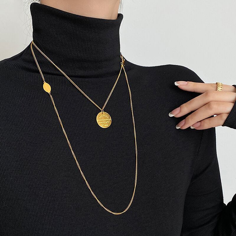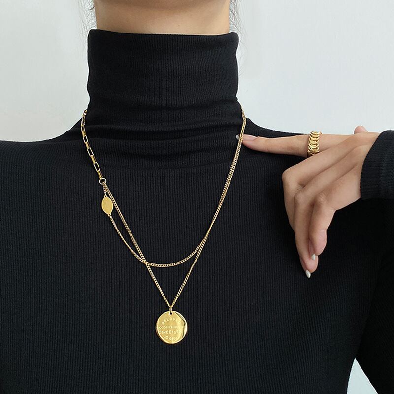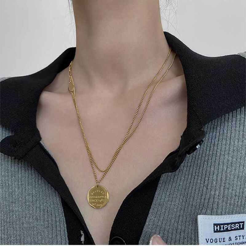 送料無料 MEYRROYUステンレススチールパンク2層ラウンドタグペンダントネックレスレディースチェーン2021トレンドパーティーギフトジュエリー レース アクセサリー AE001112604929753