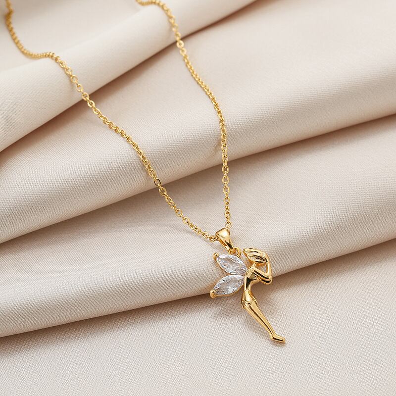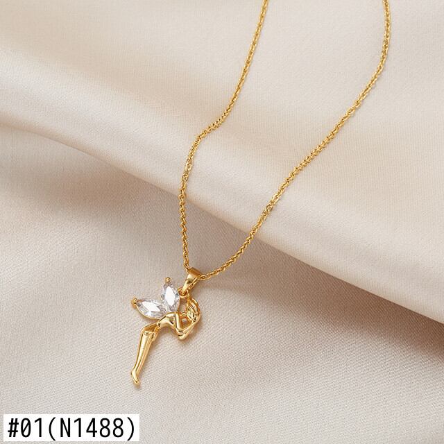 送料無料 MEYRROYUステンレススチールエルフクリスタルペンダントネックレス女性ヴィンテージゴールデン鎖骨チェーンジュエリー2021トレンディ レース ビンテージ アクセサリー AE001172544777079