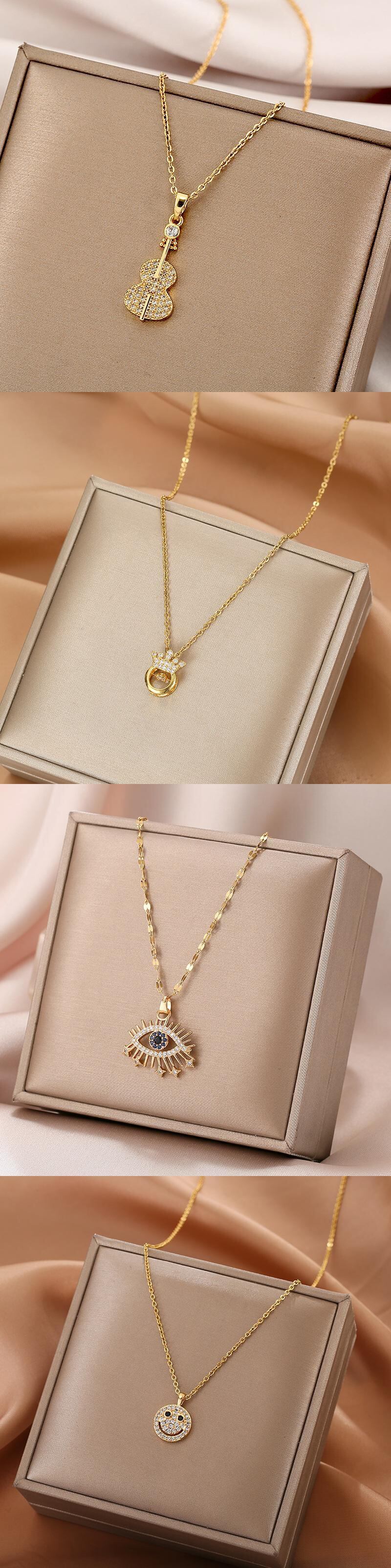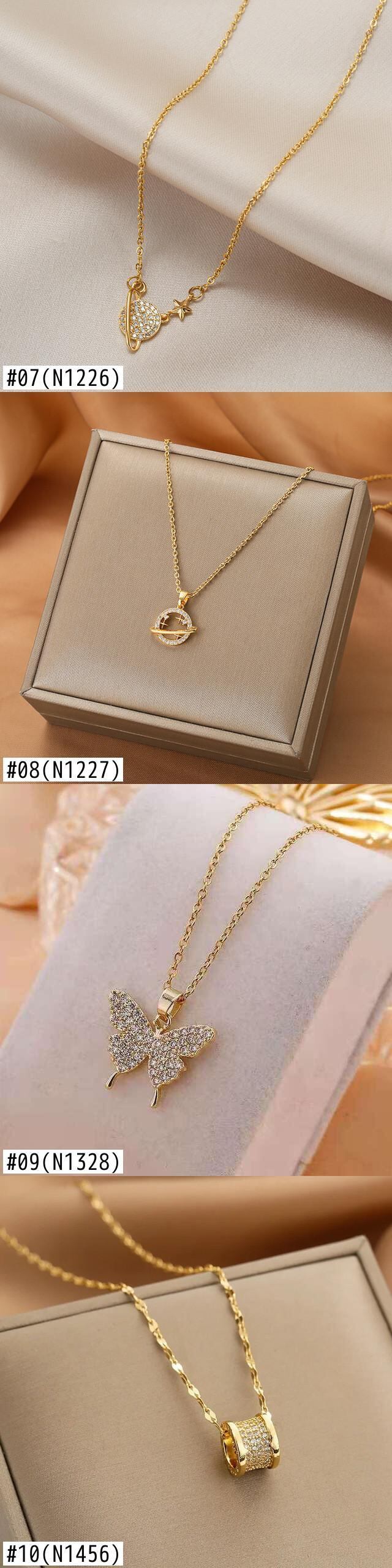 送料無料 スウィートゴールドカラーステンレススチールネックレス女性ペンダント鎖骨チェーンジュエリー レース 大人ガーリー キュート カジュアル アクセサリー AE001155162675946