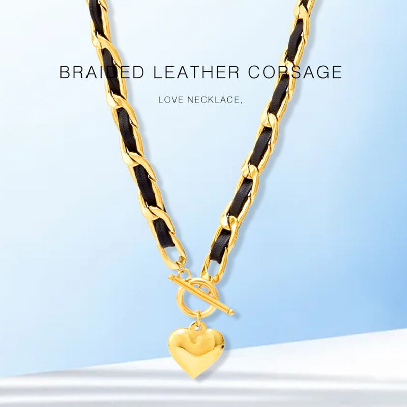 送料無料 MEYRROYUステンレススチールパンクOTトグルクラスプレザーハートペンダントネックレスレディースギフトトレンドチョーカージュエリー レース アクセサリー AE001113499289