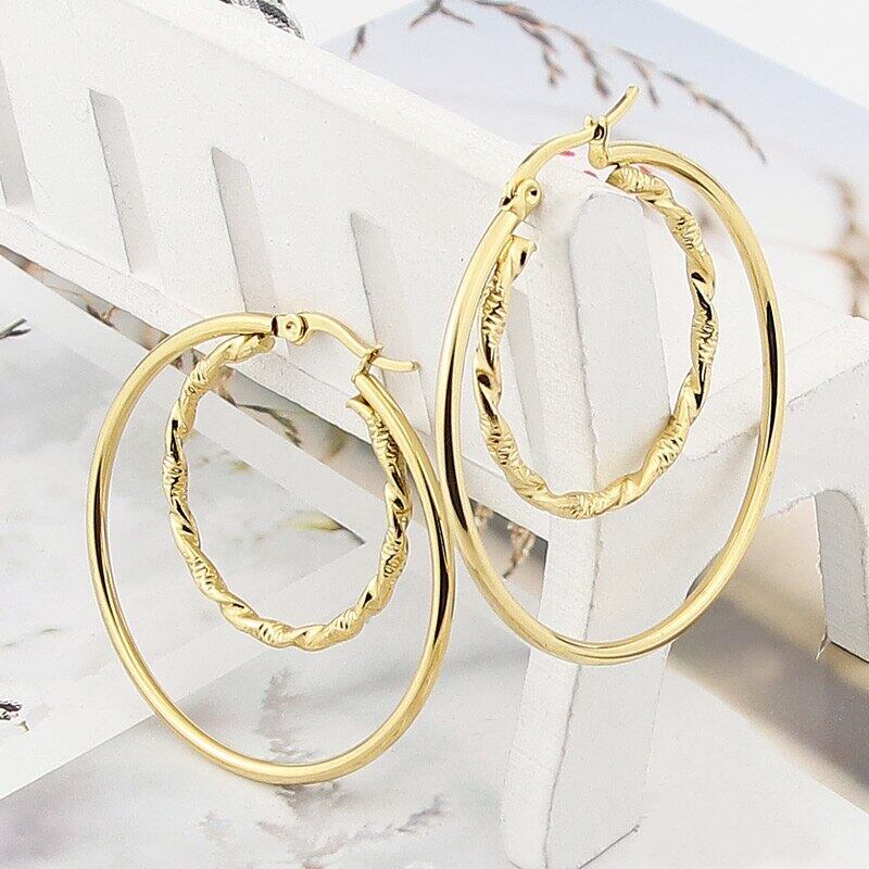 送料無料 ステンレス鋼の宝石類二重光沢のある円ツイストワイヤーイヤリング女性のパーティーの結婚式の愛の贈り物 指輪 アクセサリー AE00887725605928380
