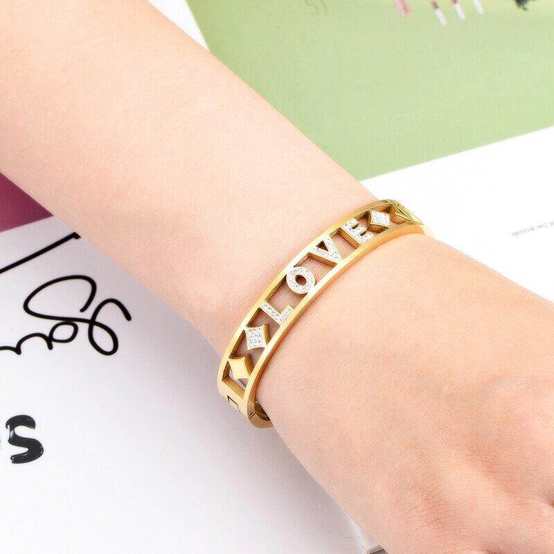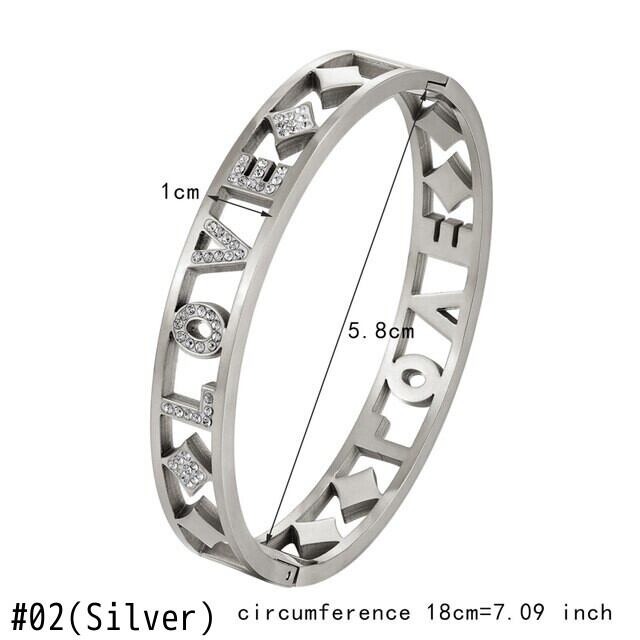 送料無料 ユニークな手紙LOVEクリスタルホロウステンレススチールブレスレットはブレスレットジュエリーギフトが大好きです アクセサリー AE00887762196699339