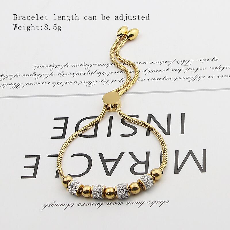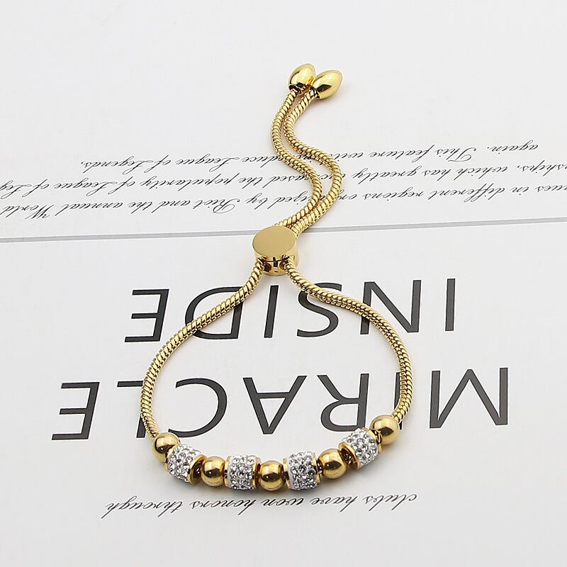 送料無料 美しいと5つのビーズ4サークルジルコン女性ブレスレットステンレス鋼調節可能なサイズのブレスレットジュエリー アジャスタブル アクセサリー AE00887751968986040