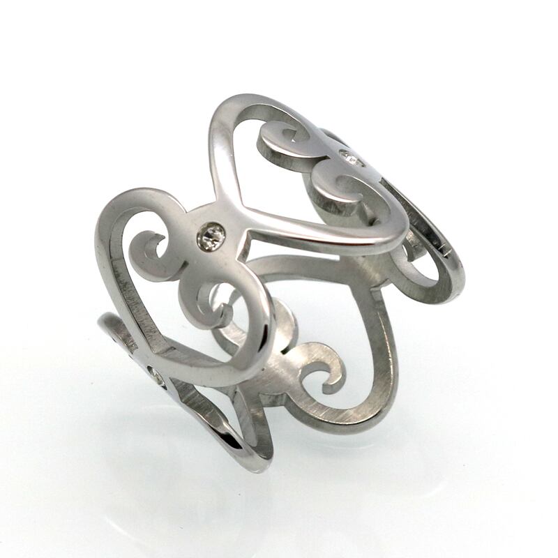 送料無料 ラブリング女性ゴールドカラーホローハートリングウェディングクリスタルリングステンレススチールジュエリーフィンガーリング 指輪 アクセサリー AE00887762626855872