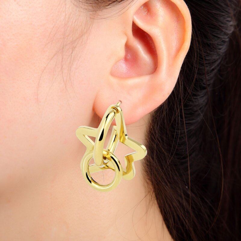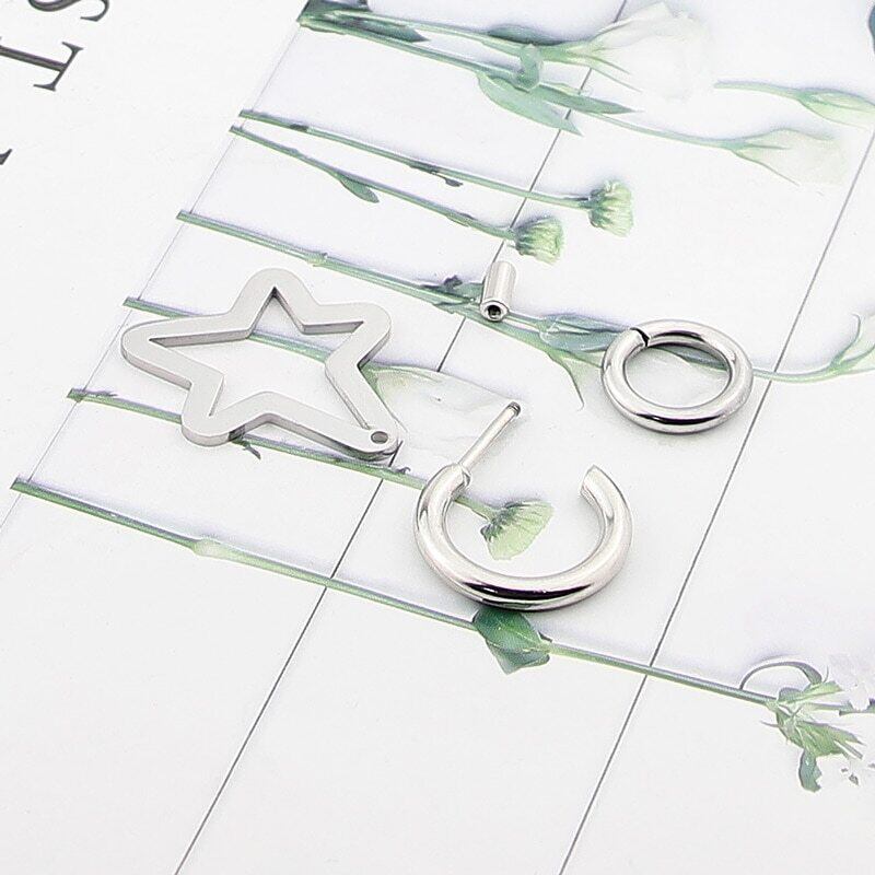 送料無料 ジュエリーステンレススチール取り外し可能組み立て可能スターラウンドペンダントイヤリング女性パーティーウェディングギフト 指輪 アクセサリー AE00887783862154408