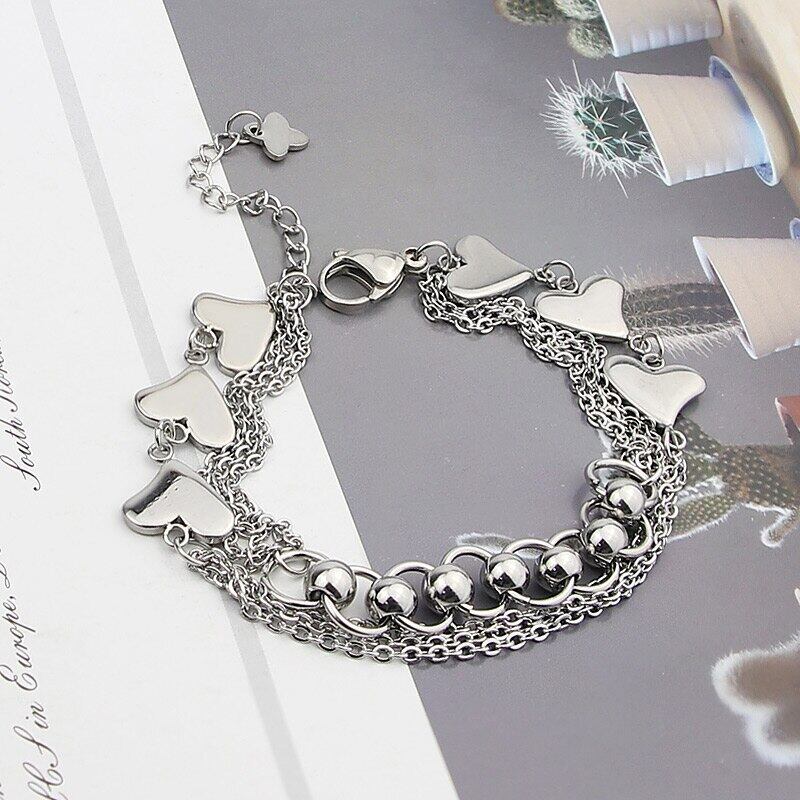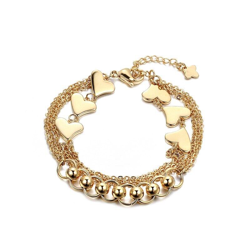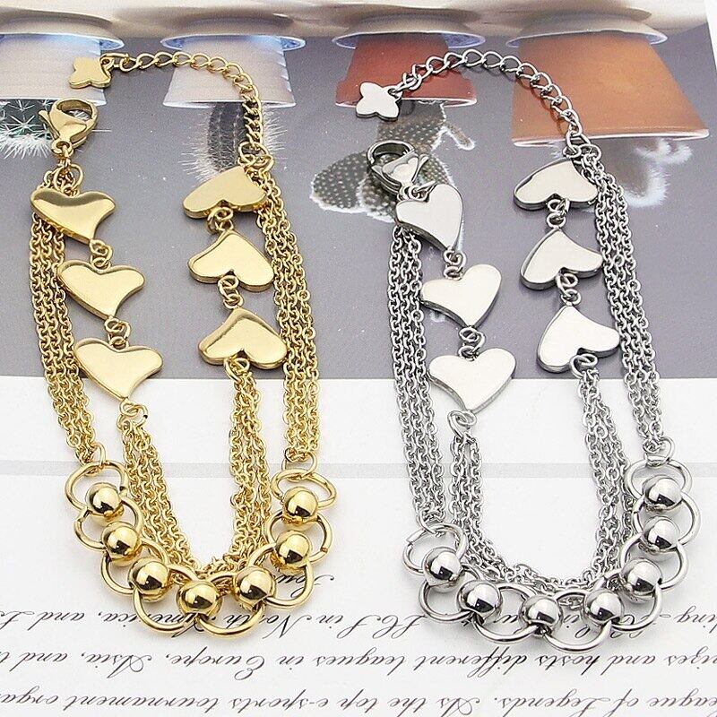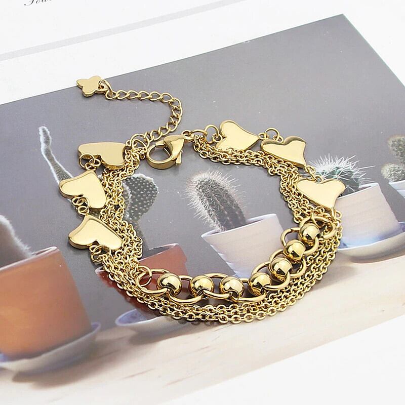 送料無料 スタイルゴールドハートとビーズチャームブレスレット&バングルマルチモードアクセサリーチェーンブレスレット女性Pulsera アクセサリー AE00887745156011659