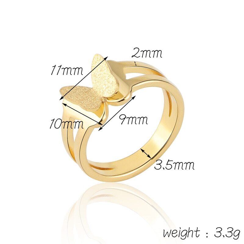 送料無料 ホットクリックステンレススチールジュエリーフロストバタフライリングウーマンパーティーラブGftメッキゴールドローズゴールドカラー 指輪 アクセサリー AE00887798990432793