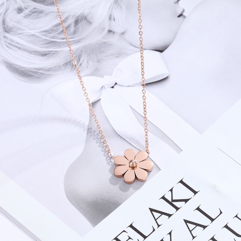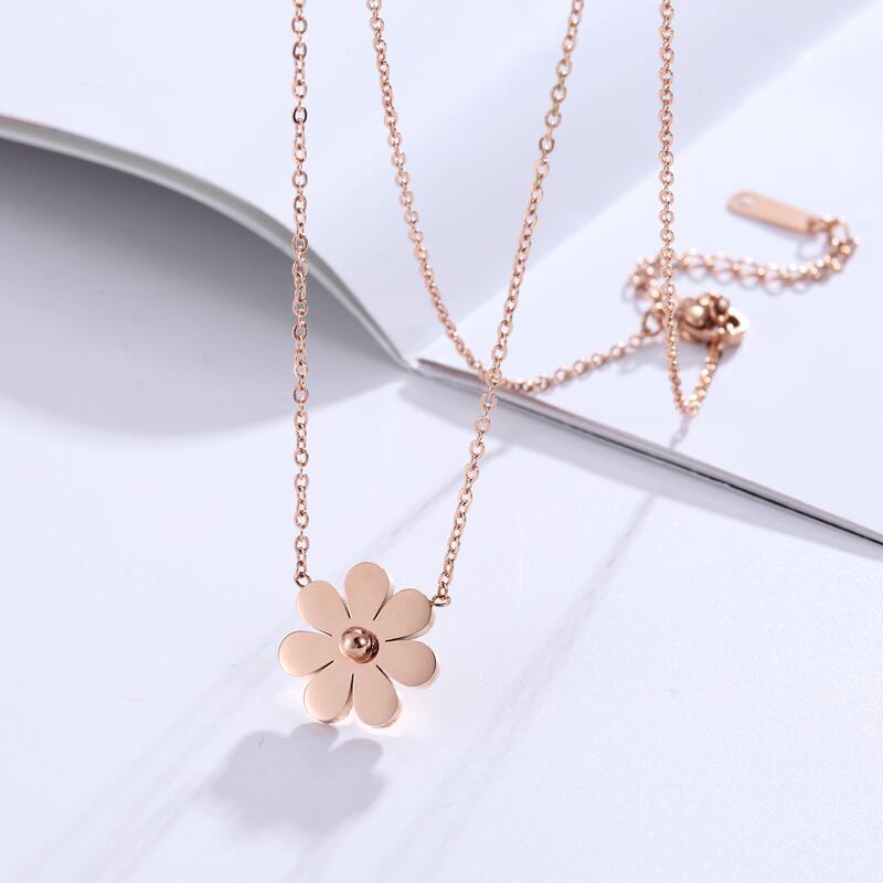 送料無料 女性ジュエリーローズゴールドカラーデイジーペンダントネックレスステンレススチールポリッシュ最高品質のコラレスジュエリーギフト レース アクセサリー AE00887755076393550
