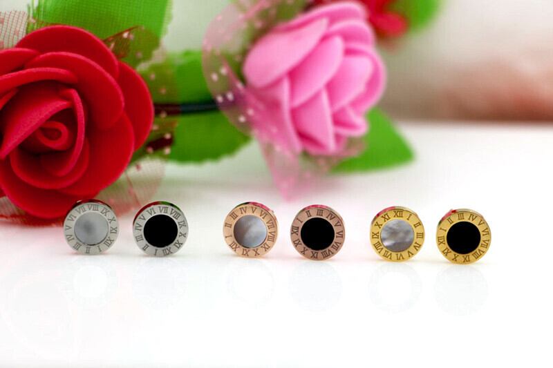 送料無料 ホットチャーミングな白いシェルと黒いエナメルローマ数字パターンラウンドスタッドピアス女性 ホワイト ブラック イヤリング リング 指輪 アクセサリー AE00887784839667535