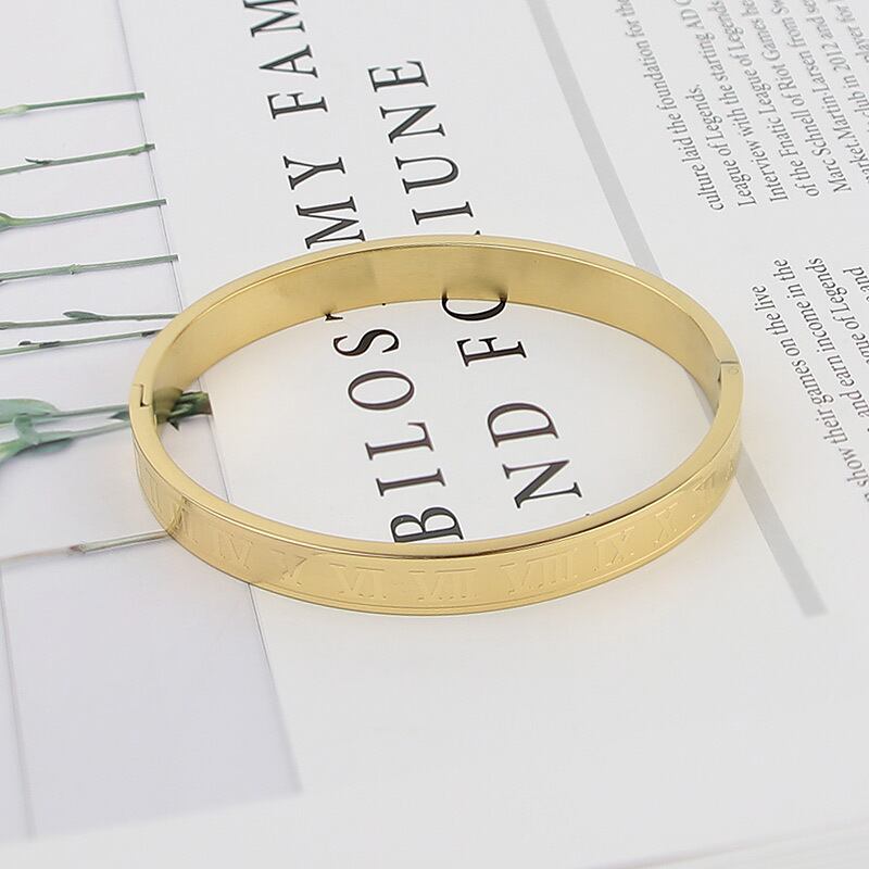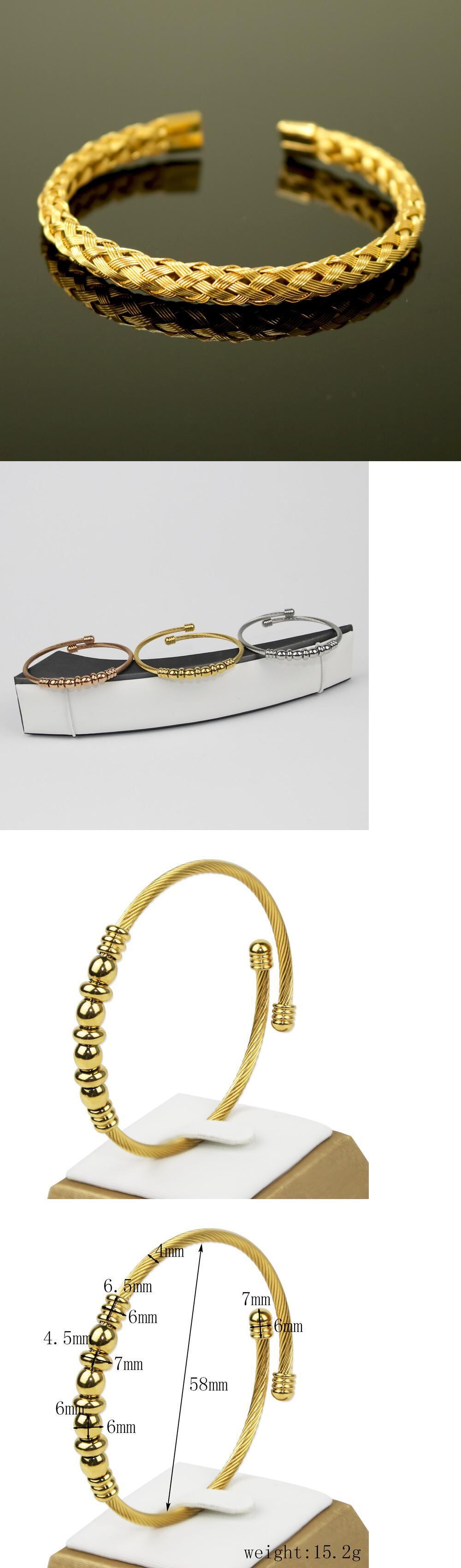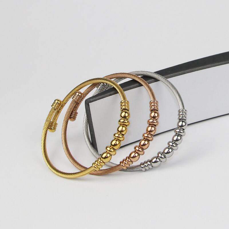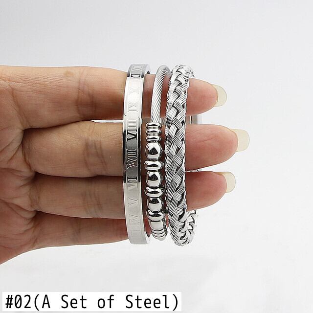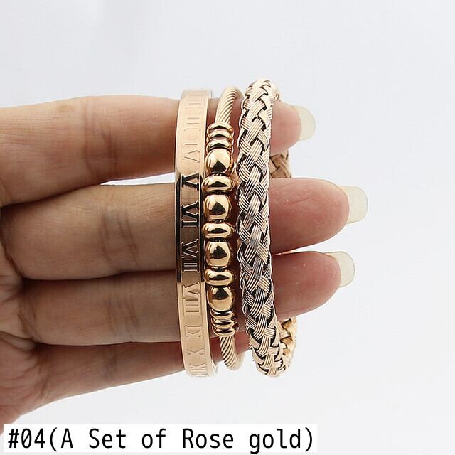 送料無料 3ピース/Jjewelryのセットステンレス鋼ローマ数字ビーズバングル織りC字型オープンブレスレット女性 アクセサリー AE00887784054300666