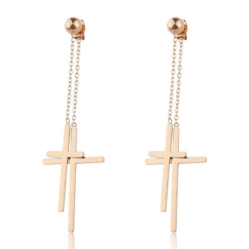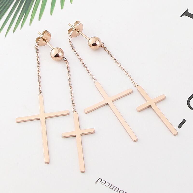 送料無料 女性ジュエリーホット気質サイズクロスロングローズゴールド女性イヤリング女性パーティーギフト 指輪 アクセサリー AE00887743875244777