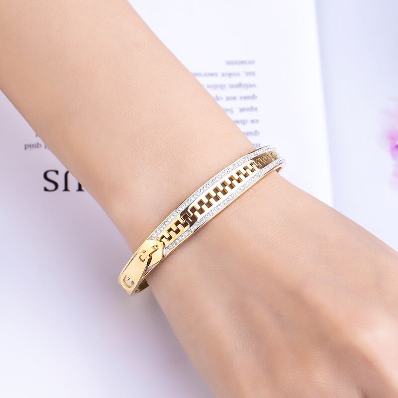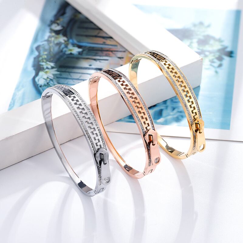 送料無料 ホットNEWクリスタルジッパーブレスレットレディースラブギフトステンレススチールブレスレットジュエリー アクセサリー AE00887728931980294