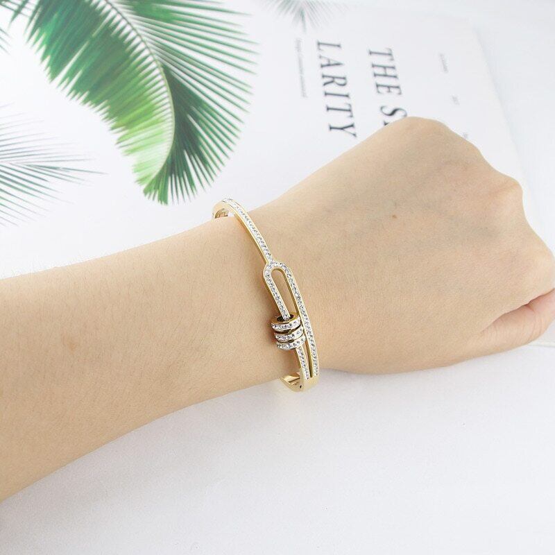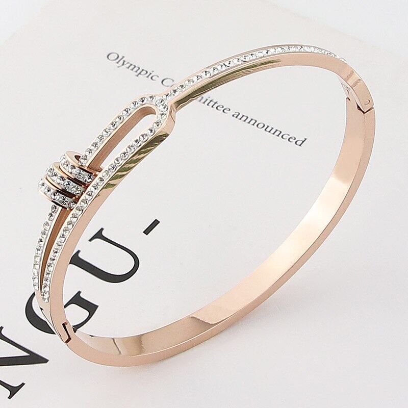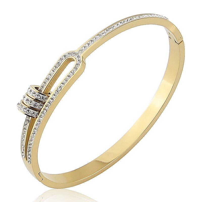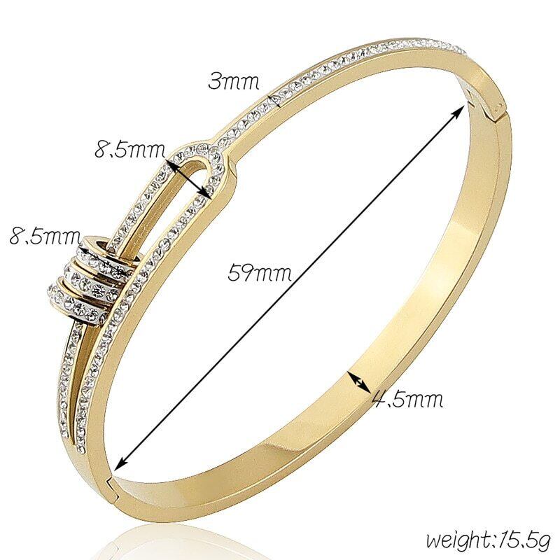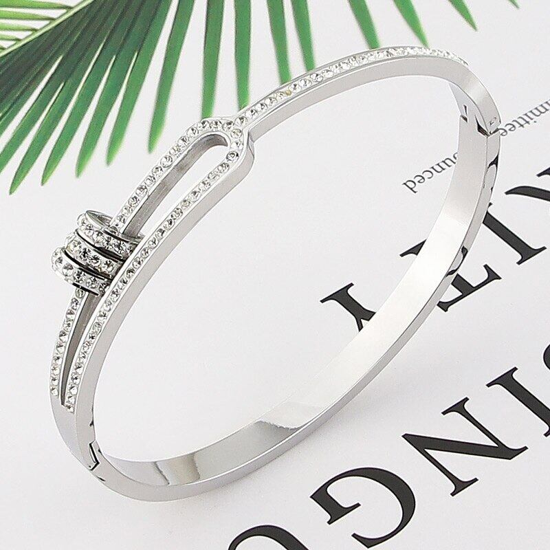 送料無料 ステンレス鋼の宝石類3つの円の水晶ブレスレット半分中空の腕輪の女性の愛の贈り物 アクセサリー AE00887773282296686