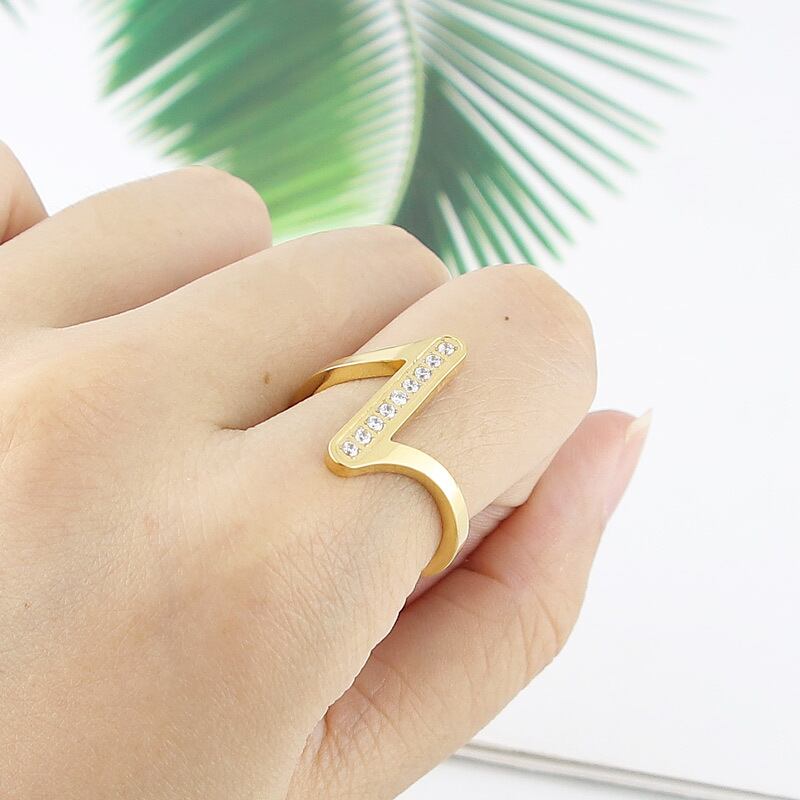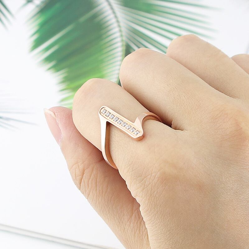 送料無料 ホットスタイルのステンレス鋼ジュエリー光沢のあるジオメトリクリスタルリング女性パーティーラブギフト 指輪 アクセサリー AE00887767512826926