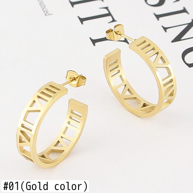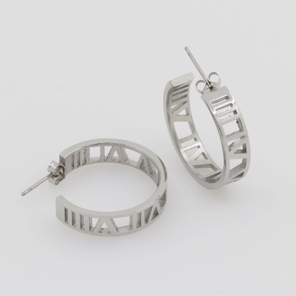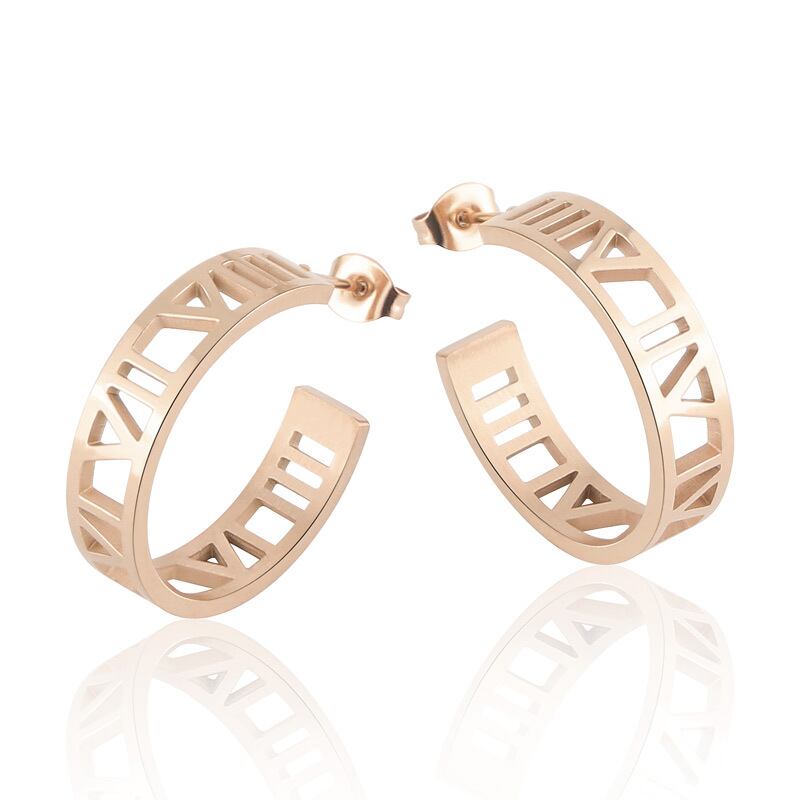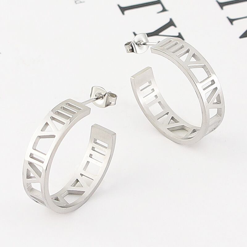 送料無料 美しく魅力的な6mm幅のローマ数字スタッドピアストップチタンスチールウーマンイヤリング 指輪 アクセサリー AE0088771920649671