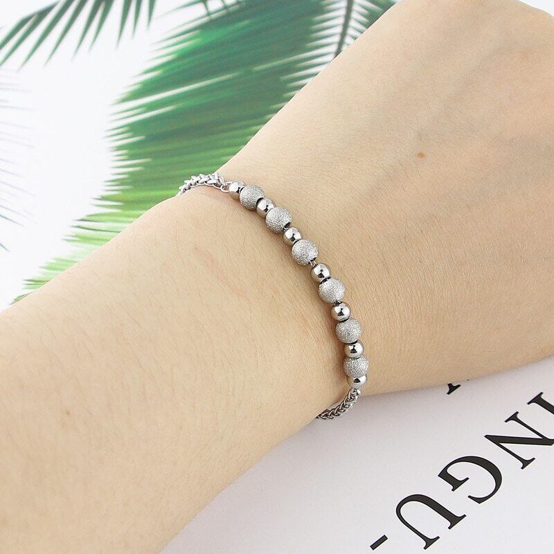 送料無料 ステンレス鋼滑らかな鋼球ストリングつや消し鋼球ブレスレット女性ブレスレット愛の宝石類B-26 アクセサリー AE00887745392868203
