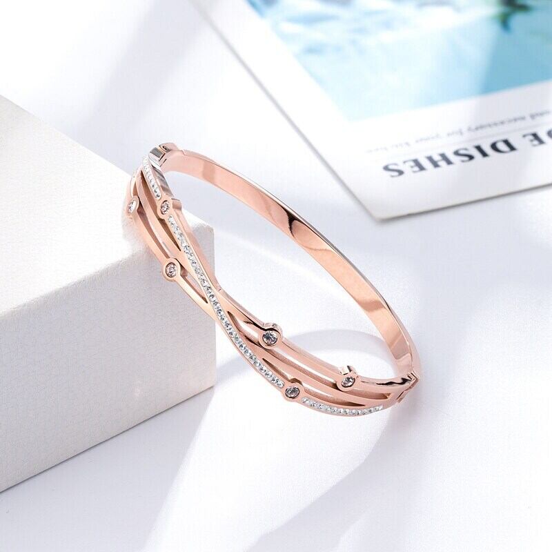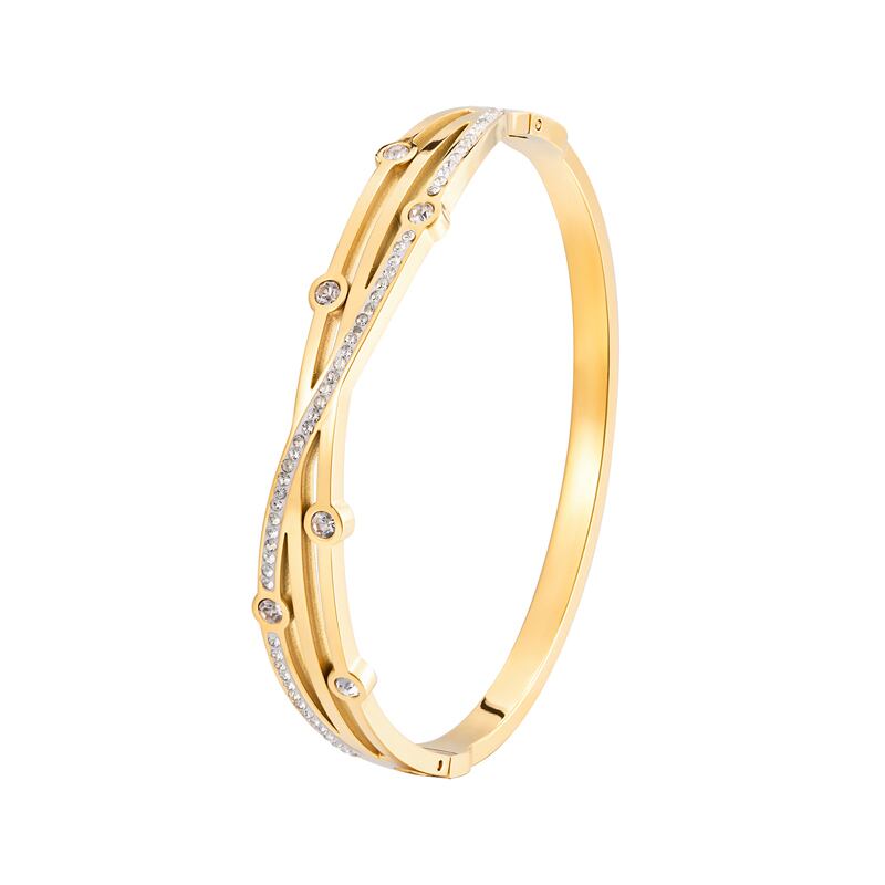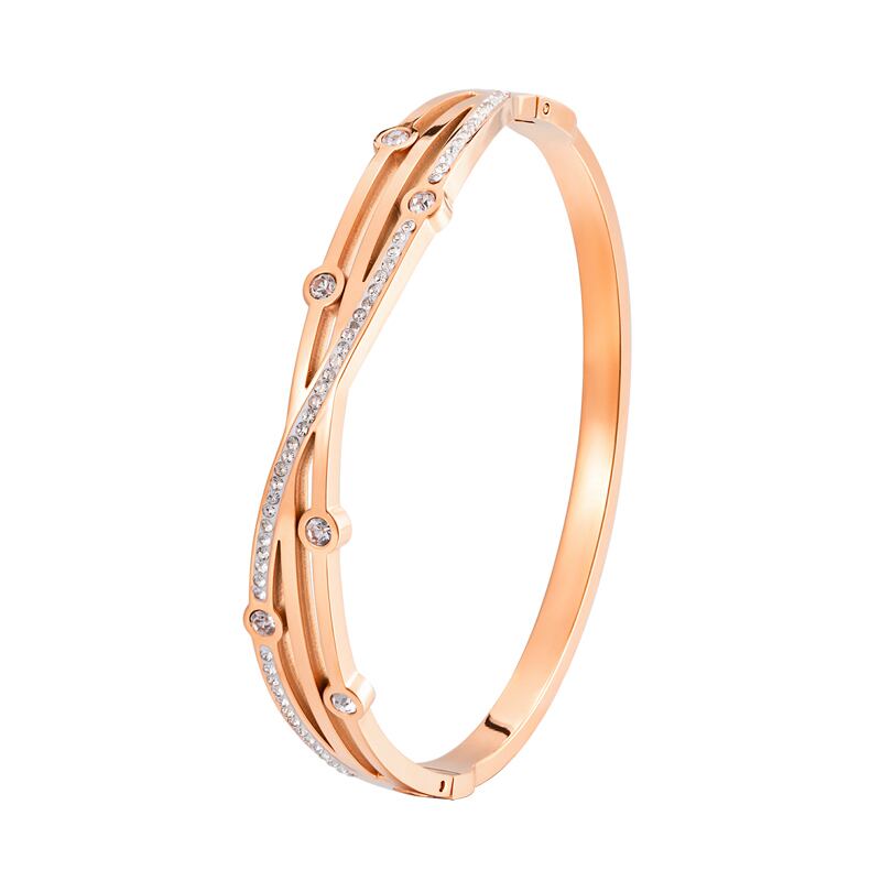 送料無料 マルチクリスタルクロスホロウアウトサイドオープニングステンレススチールブレスレットウーマンラブウェディングギフトバングルジュエリー アクセサリー AE00887766255204476