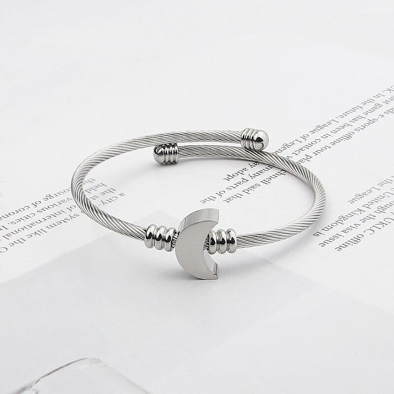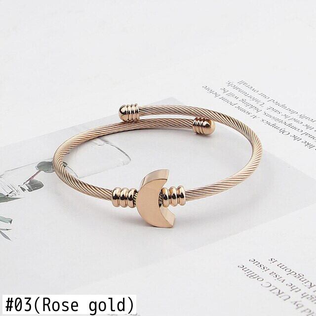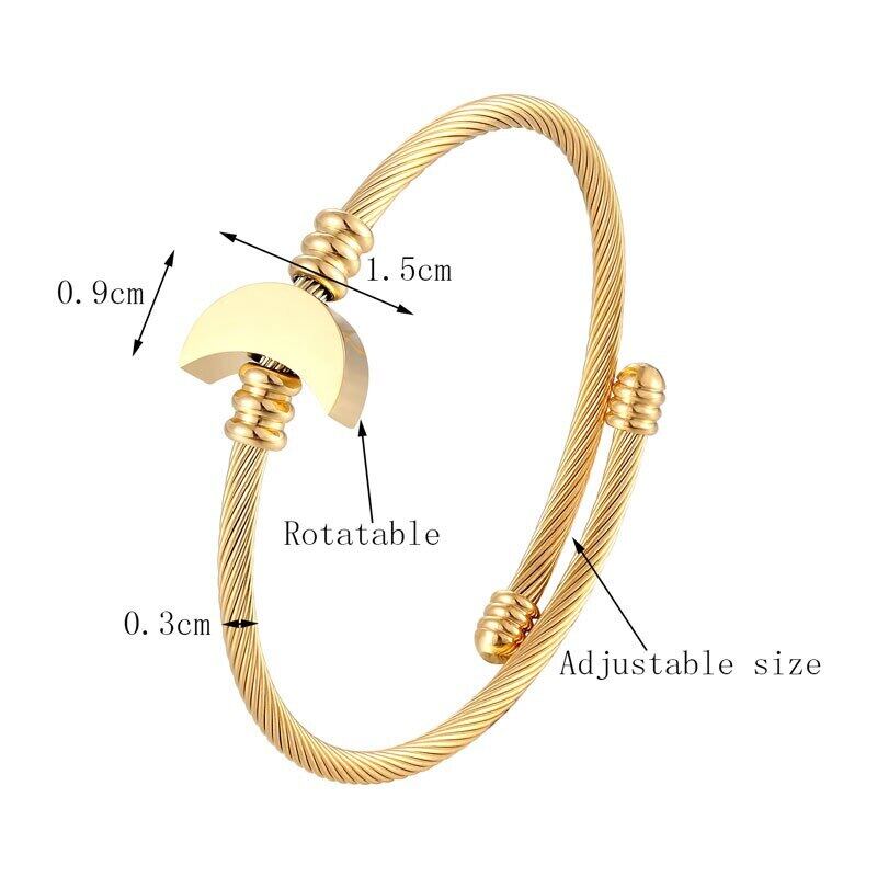 送料無料 調節可能なサイズ三日月形バングルステンレス鋼ツイストケーブルワイヤージュエリーゴールドカラーブレスレット女性 アジャスタブル アクセサリー AE00887797456806700