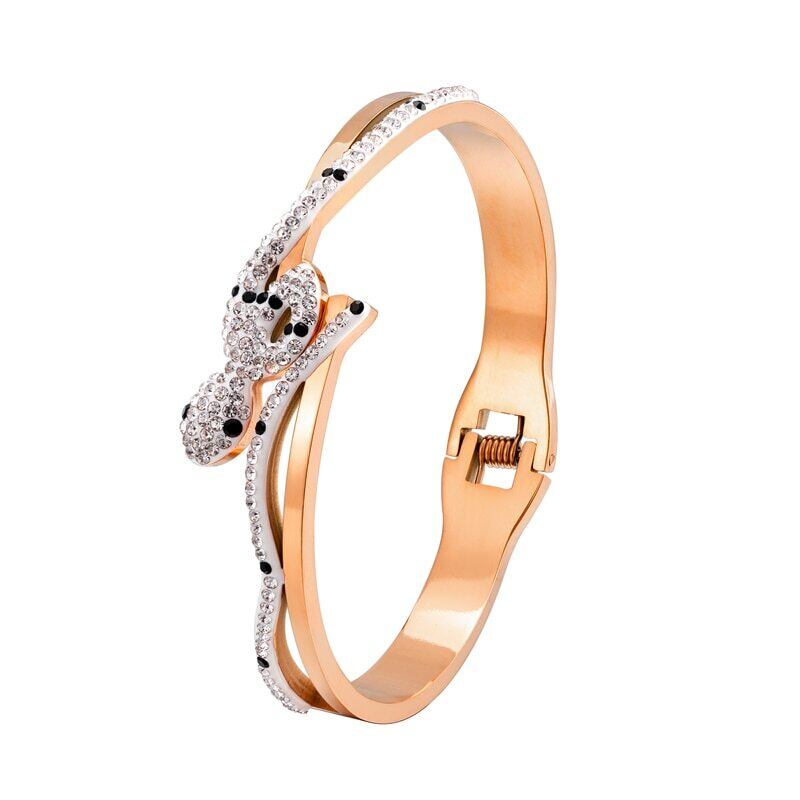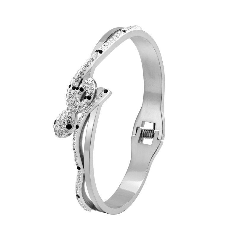 送料無料 ホットNEWブラックとホワイトクリスタルスネークスプリングオープンブレスレットレディースラブギフトステンレススチールブレスレットジュエリー 春物 アクセサリー AE00887749342223218