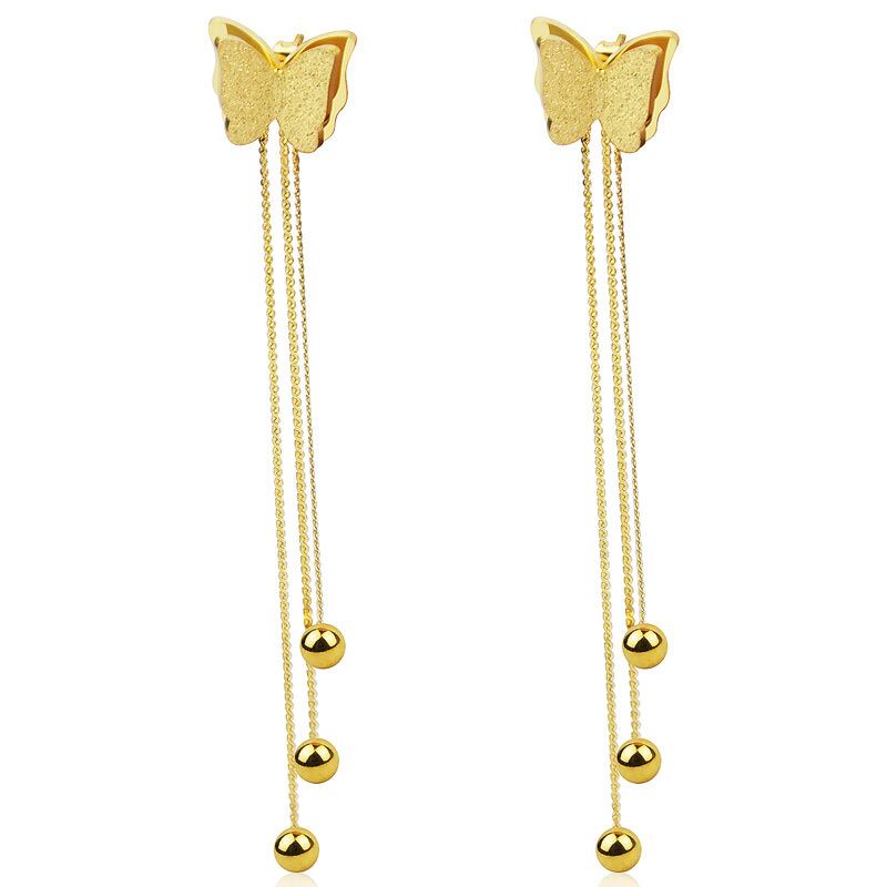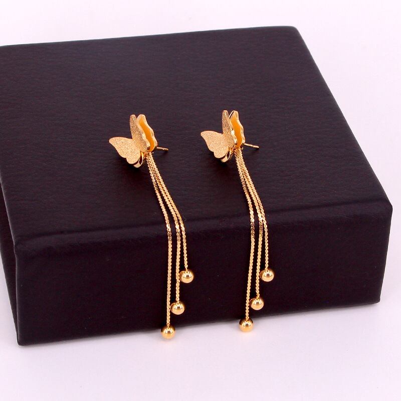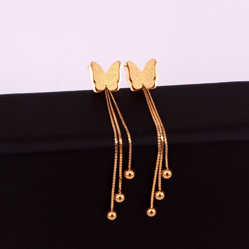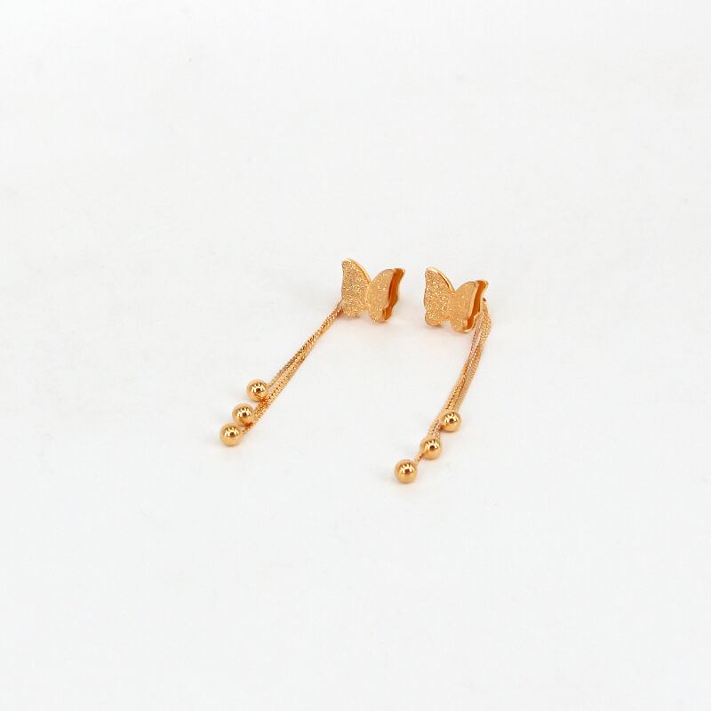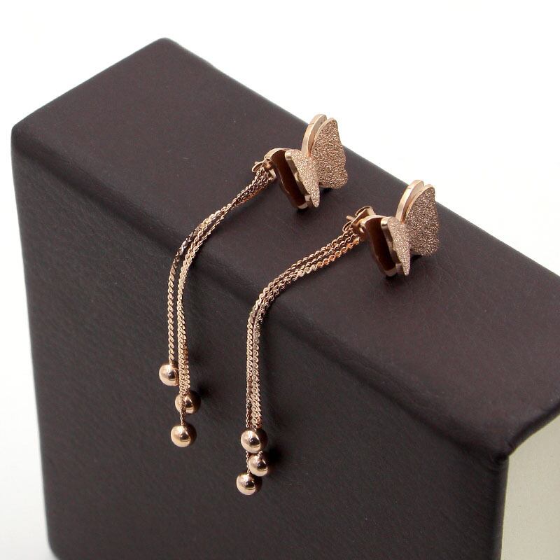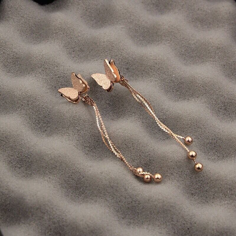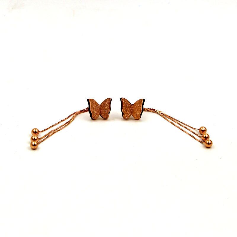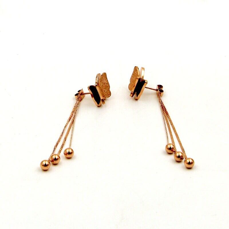 送料無料 3つの鋼球Telイヤリング女性の宝石類をぶら下げローズゴールドフロストバタフライ耳栓 指輪 アクセサリー AE00887711161242319